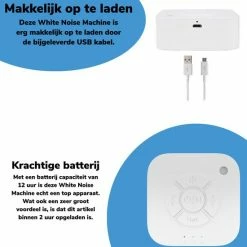JRichter – White Noise Machine – Slaaphulp – Witte Ruis – Draadloos – Met Timer – Wit