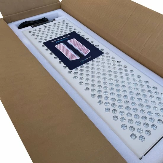 Al deze voordelen zijn samengebracht in een full lamp met in totaal 300 medische LED lichten (150 x NIR 850nm en 150 x Diep Rood 660nm).