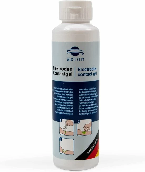 Met deze contactgel van de Duitse fabrikant axion verbeter je de geleding van gebruikte TENS-/EMS-elektroden. De huidvriendelijke, gelachtige consistentie is ideaal voor gebruik bij prikkelstroom-elektroden voor spier- of zenuwstimulatie, maar ook voor EEG en ECG. De gel voor elektrode-pads kan meerdere malen gebruikt worden.