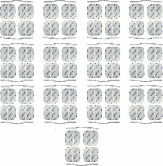 Met deze 52 zelfklevende elektroden pads van de Duitse fabrikant Axion kan je aan de slag met je TENS-apparaat voor pijnverlichting of EMS-trainingsapparaat voor spierstimulatie. De kleefelektroden zijn herbruikbaar, duurzaam en multi-inzetbaar. Compatibel voor de volgende merken: Axion, Body-Clock, Dittmann, myStim, Pierenkemper, Promed, Prorelax, Saneo, schwa-medico, Stimio, TensCare, MedFit.