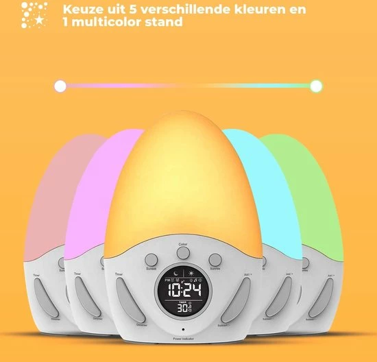 U kunt de B-care Wake-Up Light gebruiken voor het opstaan en in slaap vallen, maar de lamp is ook uiterst geschikt als sfeerverlichting, lees- en nachtlampje. Met deze lichtwekker heeft u namelijk keuze uit 5 verschillende kleuren: roze, warm wit (geel/oranje), groen, blauw en paars. De lamp bevat 9 helderheidsinstellingen, de helderheidsinstellingen kunt u bedienen door middel van touch screen boven op de lamp.