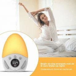 Heeft u ook soms moeite met in slaap vallen en opstaan? Dan is de B-care Wake-up Light precies wat u zoekt! Deze lichtwekker stimuleert een onspannen nachtrust. Door de lichtintensiteit langzaam toe te laten nemen en te laten veranderen van kleur, wordt u op een geleidelijke manier wakker gemaakt en in slaap gebracht. De lichtwekker bevat 2 wektijden, een timer, snooze functie, 5 verschillende kleuren en 9 verschillende helderheidsinstellingen.