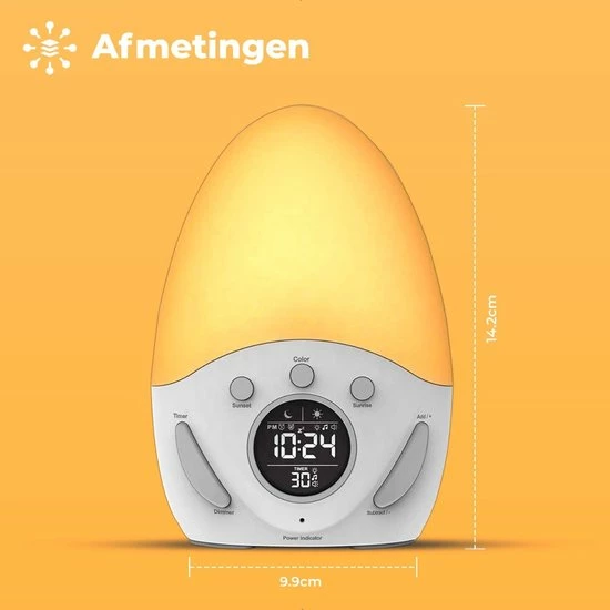 Door een slechte start van uw dag kan u zich namelijk vaak slaperig voelen en slecht functioneren. De wekker simuleert ‘s avonds een zonsondergang en vult de kamer ‘s ochtends weer met een zonsopkomst. Door de lichtintensiteit langzaam toe te laten nemen en te laten veranderen van kleur, wordt u op een geleidelijke manier wakker gemaakt. Hier heeft u de rest van de dag profijt van. Begin de dag beter dan ooit!