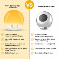 Wordt u elke dag ook abrupt in uw slaap gestoord door een luid alarm? De B-care Wake-up Light helpt u om geleidelijk aan wakker te worden met licht. Zo beseft uw hele lichaam langzaam dat het dag is en wordt het makkelijker om vroeger op te staan of in slaap te vallen. Met de B-care Wake-up Light is een slechte nachtrust verleden tijd!