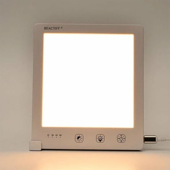 Deze nieuwe Pro Beactiff Daglicht lamp is een energielamp/lichttherapielamp waarmee u fit en energiek wordt, voor een betere stemming, meer energie, een goede nachtrust en een einde aan je winterdepressie. De lamp is het zonnetje in huis en imiteert het daglicht waarmee uw energie niveau en stemming worden verbeterd. Het is aanbevolen om elke dag ongeveer 60 minuten voor de lamp te gaan zitten, het is niet nodig om in de lamp te kijken, de lamp hoeft enkel naar u gericht aan te staan. U kunt dus de krant lezen, werken of uw make-up doen terwijl deze lamp aanstaat!