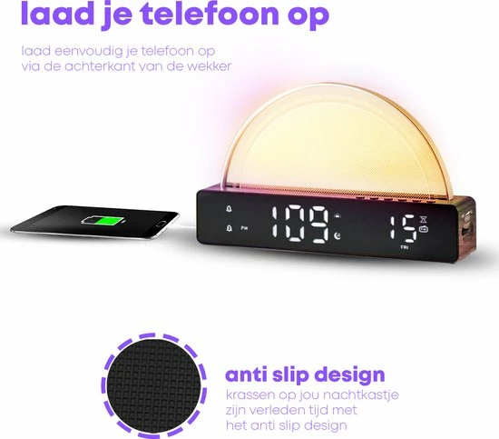 ✓ Tip! Heb je ook zo’n moeite met het uit bed komen? Doordat de wake-up light je onbewust wekt met een zacht licht, zul jij wanneer de wekker afgaat direct wakker zijn en klaar voor de nieuwe dag!