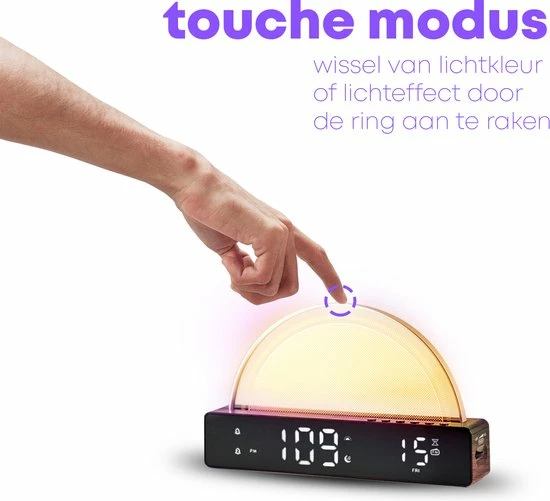 Nog even omdraaien? Door enkel de ring van de wake-up light aan te raken snooze je de wekker nog een aantal minuten.