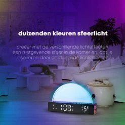 De wekker kent een heus lichtschouwspel. De multifunctionele wekker bevat standaard 8 vaste kleurencombinaties. Naast deze 8 kleurencombinaties beschikt de wekker ook over 3 multikleuren functie. Hierbij schitterd het LED licht in duizenden verschillende kleurenspellen. Het licht loopt in alle denkbare kleuren in elkaar over in instelbare tempo’s!
