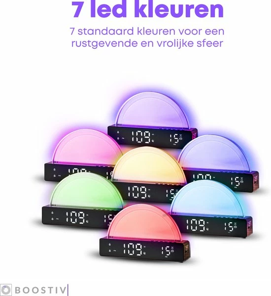 Stap jij ook altijd met het verkeerde been uit bed? Mis jij het uigerust wakker worden? Of kan jij niet in slaap komen? Met de alles-in-één wekker van Boostiv is elke dag een feest! Met de uitstekende speaker, talloze licht kleurencombinaties, het moderne design en de wake-up light functie is elke dag eentje om van te genieten.