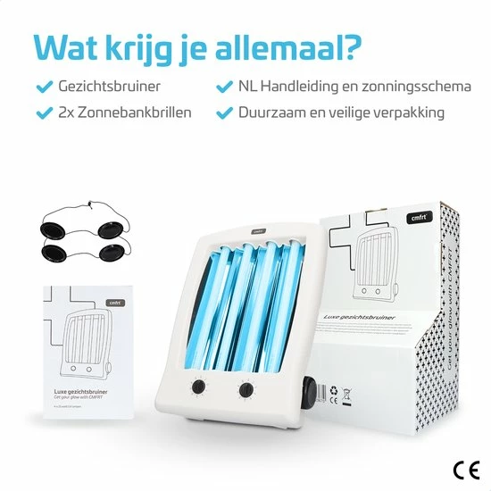 De Cmfrt Gezichtsbruiner is van hoge kwaliteit. De 4 x 15 Watt lampen in combinatie met de ingebouwde reflectoren zorgen voor een stralende huid en een gezond kleurtje. Naast een optimaal bruiningsresultaat is de Gezichtsbruiner ook zeer gebruiksvriendelijk. Wilt u ook verantwoord bij bruinen? Bij Cmfrt bent u aan het juiste adres!