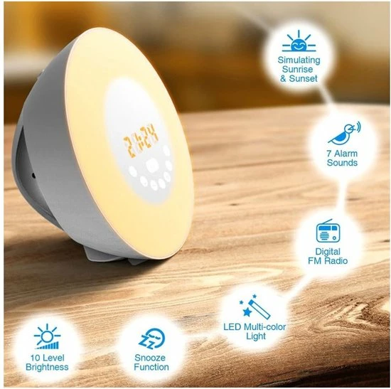 Lichtwekker, Sleeptimer, Meervoudig alarm, Snooze Lichtwekker, Sleeptimer, Meervoudig alarm, Snooze Je wekker kan je op meerdere manieren wakker maken. Zo kan je sommige wekkers instellen voor verschillende wektijden doordeweeks, of in het weekend. Een sleeptimer kan je in slaap laten vallen met een muziekje waarna de radio vanzelf uit gaat. Tooltip