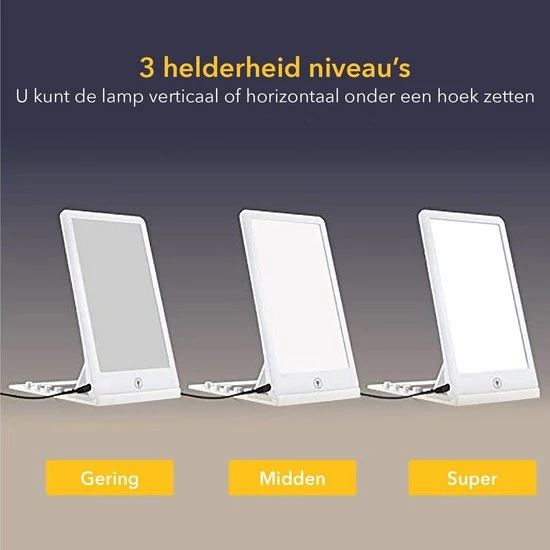 Dagelijkse bezigheden combineren terwijl de lamp aanstaat, zet de lamp naast u als er wordt gewerkt, de krant wordt gelezen of bezig bent met uw make-up. De lamp imiteert het daglicht waardoor uw energieniveau en stemming worden verbeterd.