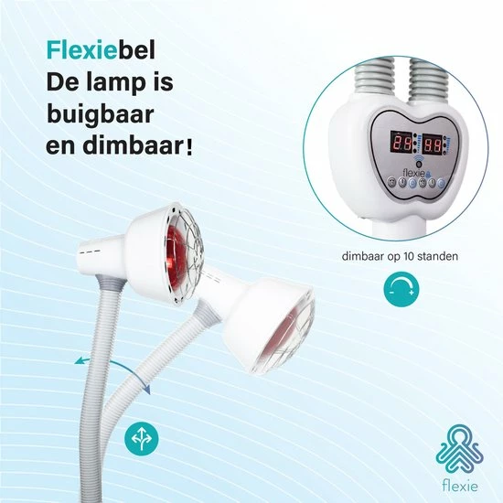 Bereik elk lichaamsdeel: De Flexie Infralux 500W beschikt over twee flexibele draaiarmen, hierdoor kan je de lamp gemakkelijk op elke positie zetten.