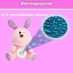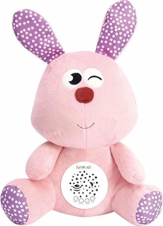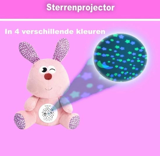 Knuffel konijn met white noise geluiden, meer dan 10 slaapmuziekjes en nachtlampje.