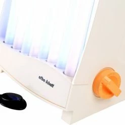Het unieke ontwerp van onze 150 W gezichtsbruiner, bestaande uit 8 x 15 Watt UVA-buizen in roze en blauw, zorgt voor snelle en effectieve resultaten. De blauwe buisjes hebben een verzachtende werking die de bloeddruk en de polsslag verbetert en de roze buisjes hebben een activerende werking die de tonus verbetert en het immuunsysteem versterkt. Bovendien zorgt het reflectorsysteem ervoor dat elke lichtstraal zo efficiënt mogelijk werkt. Dit zorgt voor een mooie en natuurlijke look die uw zelfvertrouwen een boost geeft.