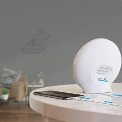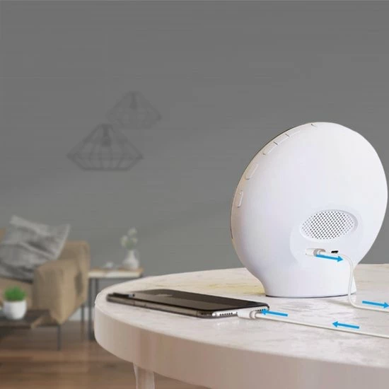 U ontvangt een USB-kabel en adapter met de WakeUp Light. Hierdoor laad je eenvoudig je smartphone of ander gewenst apparaat op via de USB-poort. Zelfs je telefoon begint de dag vol energie!
