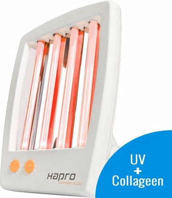 Zet de compacte, lichtgewicht Hapro Summer Glow HB175+ UV&Collageen neer waar u maar wilt, zodat u op ieder gewenst moment van de dag van een heerlijke sessie kunt genieten. De sensatie: u zit lekker in uw vel en u ziet er zichtbaar stralender uit.