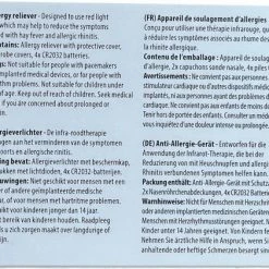 Deze allergie verlichter maakt gebruikt van lichttherapie op twee specifieke golflengtes om de cellen die histamine vrijgeven te onderdrukken. Met het gebruik van lichttherapie zorgt dit apparaat ervoor dat u op een rustige manier van de symptomen van allergische reacties op diverse allergenen afkomt. Denk aan graspollen, kattenhaar en huisstofmijt. U kan de verlichter op zichzelf of naast uw gebruikelijke medicatie gebruiken. Het is aanbevolen om het apparaat twee keer per dag te gebruiken, met vijf tot zes uur tussen elk gebruik.