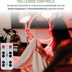 De lamp is te bedienen met de bijgeleverde afstandsbediening. Hiermee kan de temperatuur en de timer bediend worden, zonder dat u hiervoor hoeft op te staan.(Batterij niet meegeleverd)