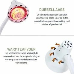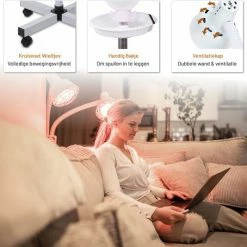 De lamp kan 360 graden roteren en u kunt de hoek in stellen zoals u dat wilt. Daarnaast is de lamp in hoogte verstelbaar, zodat elk deel van het lichaam behandeld kan worden. Het product heeft een zinklegering, zodat de lamp stevig blijft staan en niet om kan vallen. De intensiteit is naar eigen keuze in te stellen en door de flexibele arm kan u gericht en makkelijk behandelen.