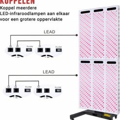 Verbind meerdere lampen aan elkaar om zo een nog grotere oppervlakte te behandelen. De LED-infraroodlampen zijn door middel van de UTP-kabel aan elkaar te verbinden. Zo kun je van meerdere lampen een geheel maken. Ga lekker liggen en behandel zo je hele lichaam. Dubbel zo snel en dubbel zo goed!