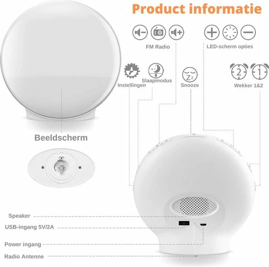 Licht heeft veel invloed op belangrijke processen in ons lichaam. Het heeft invloed op onze prestaties en het energieniveau. Door wakker te worden met de Wake-up Light wekker van Lucky’s Products ondersteun je het biologische dag- en nachtritme; je wordt op een natuurlijke manier wakker. Met de zonsopgangsimulatie word je gedurende 10 tot 60 minuten geleidelijk gewekt, waarbij de lichtintensiteit oploopt tot 100%. Hierdoor start je elke dag fit en vol energie!