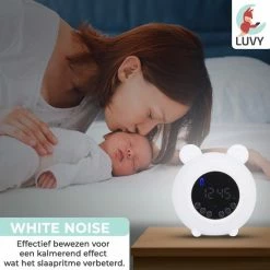 De slaaptrainer van Luvy is ontworpen om het slaapritme van je kindje te verbeteren. Na consequent gebruik ervan zal je kind, op een leuke en speelse manier, namelijk besef van tijd gaan ontwikkelen. Dit helpt bij de dagelijkse routine en kan al snel in een betere nachtrust resulteren. Met behulp van slimme technologie, ademend licht en rustgevende natuurgeluiden (inclusief white noise-geluid), draagt de trainer bij aan het cre?ren van vastigheid en structuur, om zo een gezond slaappatroon te ontwikkelen. Daar slaapt niet alleen je kindje beter van, jij zelf ook!