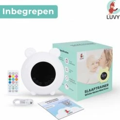 De slaaptrainer van Luvy is ontworpen om het slaapritme van je kindje te verbeteren. Na consequent gebruik ervan zal je kind, op een leuke en speelse manier, namelijk besef van tijd gaan ontwikkelen. Dit helpt bij de dagelijkse routine en kan al snel in een betere nachtrust resulteren. Met behulp van slimme technologie, ademend licht en rustgevende natuurgeluiden (inclusief white noise-geluid), draagt de trainer bij aan het cre?ren van vastigheid en structuur, om zo een gezond slaappatroon te ontwikkelen. Daar slaapt niet alleen je kindje beter van, jij zelf ook!