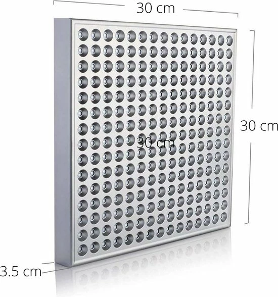30×30 cm – Door het grote formaat van de lamp, kan deze een groot lichaamsoppervlak bestralen. Ideaal voor bijvoorbeeld de rug.