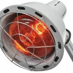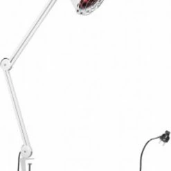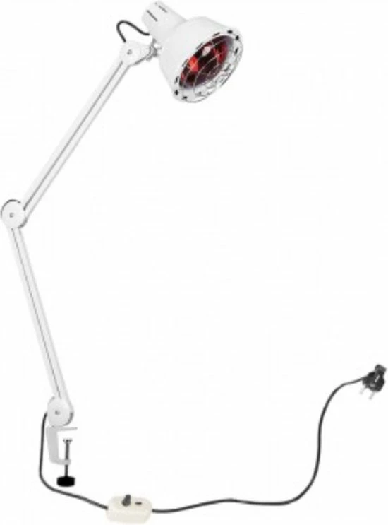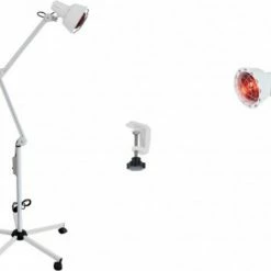 Infraroodlamp voorzien van klem en statief met 5 wielen, dus zeer stabiel.