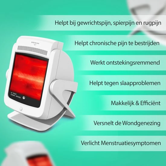 Heb je last van gewrichtspijn, spierpijn, rugpijn, vermoeidheid of stemmingsklachten? Maak hier een einde aan met Panacea Infraroodlampen. Ontdek de kracht van infraroodtherapie voor pijnbestrijding zonder medicijnen met Panacea Infraroodlamp 200W.