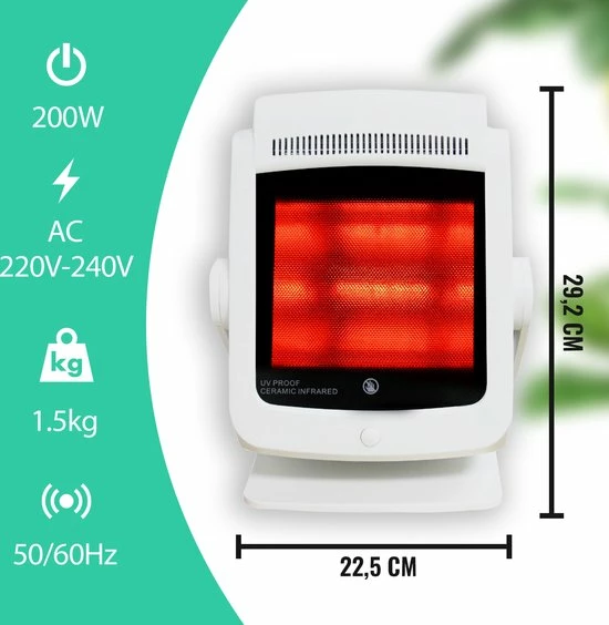 De energie van infrarood licht wordt in het lichaam gebruikt voor ontelbare stofwisselingsprocessen en helpt onder andere bij het verlichten en voorkomen van gewrichtspijn, spierpijn, ontstekingen en een zwakke immuunsysteem. Daarnaast is infrarood licht ideaal bij stemmingsklachten, vermoeidheid en slaapstoornissen. Deze infrarood lamp is effectief voor het ontspannen van spieren en het sneller herstellen van wonden.