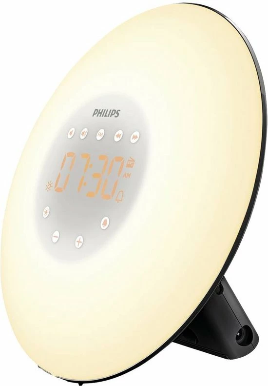 Door de simulatie van de zonsopkomst word je geleidelijk gewekt, waardoor je meer energie hebt in de ochtend. Binnen 30 minuten wordt je kamer gevuld met helder geel licht. Dit proces van veranderend en feller wordend licht stimuleert je lichaam om op een natuurlijke manier wakker te worden. De wake-up light bevat tevens een bedlampje met 10 lichtinstellingen. De helderheid van het scherm kun je naar wens instellen door middel van 4 verschillende instellingen.