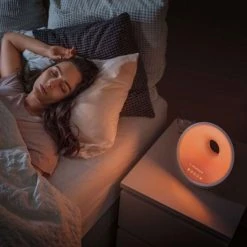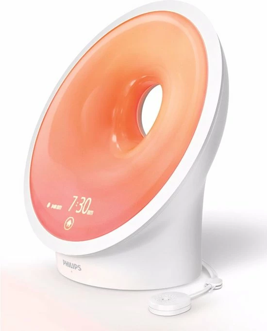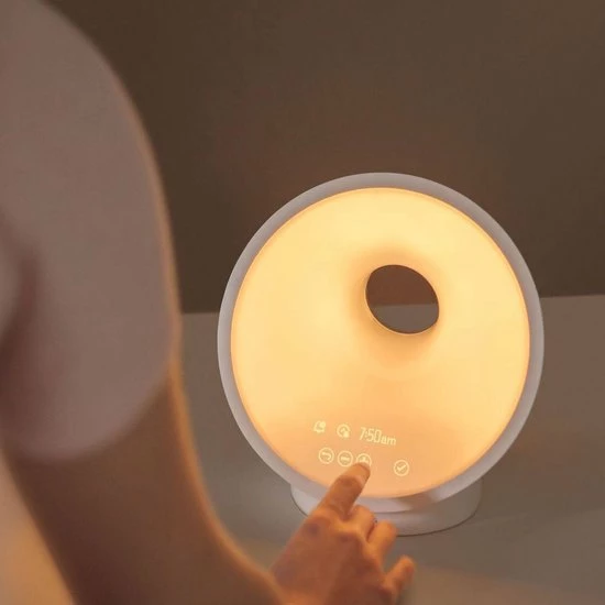 Het licht wordt v??r je wektijd geleidelijk sterker en verandert van zacht ochtendrood in oranje om uw kamer uiteindelijk met helder geel licht te vullen. Het proces van veranderend en toenemend licht is ontworpen om je lichaam op een natuurlijke manier wakker te laten worden. Terwijl het licht feller wordt, zorgt het door jouw gekozen natuurlijke geluid of de geselecteerde radiozender er bovendien voor dat je helemaal wakker wordt en klaar bent voor de dag.