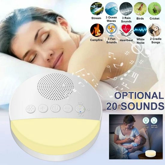 Er is niets zo vervelend als je kindje niet in slaap kunt komen. Of heel de nacht wakker liggen, en steeds de wekker dichterbij ziet komen. Onze White noise slaapmachine is een Wetenschappelijk bewezen hulpmiddel! De slaaptrainer beschikt over 20 verschillende natuurgeluiden. Het is ook mogelijk om je telefoon op te laden d.m.v. de White Noise machine. Binnen 1,5 uur is de slaaptrainer volledig opgeladen! Waarna je weer 30 uur vooruit kan. Natuurlijk is het ook mogelijk om de slaaptrainer op het netstroom aan te sluiten. De White noise slaaptrainer is geschikt voor jong en oud. Kies een van de 20 rustgevende natuurgeluiden die 15, 30 of 60 minuten doorspelen.
