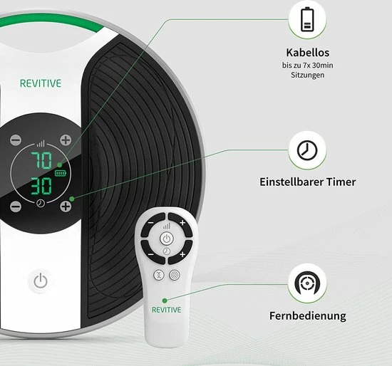 Om de veneuze terugstroom te verbeteren, stuurt de gepatenteerde Oxywave-technologie van Revitive die is gebaseerd om EMS, elektrische spierstimulatie die wordt gebruikt in praktijken in de kinesitherapie, elektrische pulsen onder de voetzool waardoor het samentrekken en ontspannen van de beenspieren wordt geactiveerd, zoals een pomp. Hoe meer je spieren werken, hoe meer de spieren samentrekken en hoe eenvoudiger de aders het bloed naar het hart kunnen pompen. Bij regelmatig gebruik verstevigt de Revitive-technologie de beenspieren en verbetert het apparaat actief de bloedsomloop om de goede gezondheid van uw benen te waarborgen.