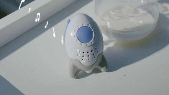 dat het slaaptijd is. Ook kun je kiezen voor het ontspannende geluid van een spinnende kat of een kosmisch geluid dat door NASA is opgenomen in de ruimte. Met zoveel verschillende