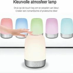 Jouw nieuwe wake up LED lamp is te gebruiken als nachtlamp, leeslamp ?n als wekker, hoe handig is dat! Schakel tussen 3 verschillende helderheidsniveaus en 6 kleuren en cre?er de juiste sfeer op ieder moment van de dag. Daarnaast is het bedlampje geheel draadloos en daarmee ook gemakkelijk mee naar buiten te nemen.