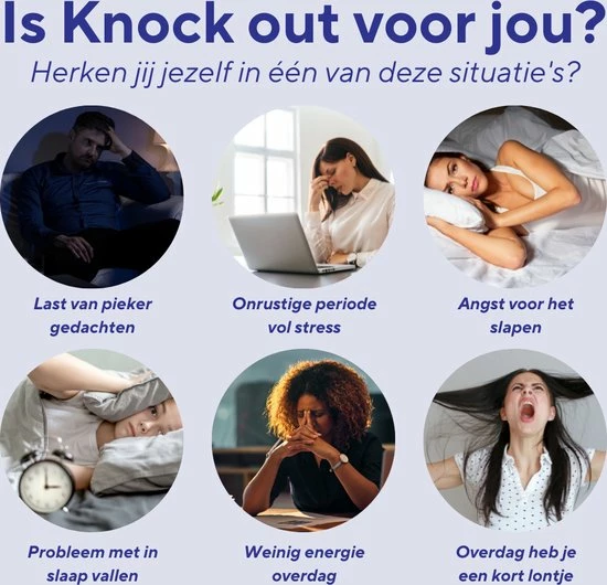 Klanten gebruiken Knock out in stressvolle periode om de rust te bewaren en je een gevoel van ontspanning en kalmte te geven. Door deze ontspanning en kalmte kan je ‘s avonds sneller en dieper slapen en wordt je ‘s ochtends weer fris wakker.
