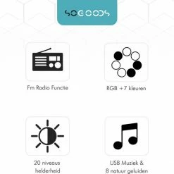 Stel je wekker volledig in naar wens en cre?er je optimale slaap ritme. Voor een energieke start van de dag of een rustig einde van de avond. Met de SoGoods Wake Up Light word je makkelijk zelf het ware zonnetje in huis!