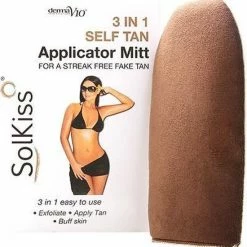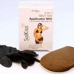 Solaris Solkiss 3 in 1 Applicator Handschoen is een handschoen die het zelfgebruinde huid verzorgt. Deze is speciaal ontworpen voor de Solaris Instant Spray Tan. Dankzij de twee verschillende zijdes kan het huid zowel voor als na het zelfbruinen verzorgt worden. De witte sponszijde verwijdert de dode huidcellen, waardoor de zelfbruiner egaal op de huid kan worden gebracht. De bruine sponszijde van de Solaris Solkiss 3 in 1 Applicator Handschoen wrijft de zelfbruiner goed uit voor een streeploos effect en zijn de lastige plekjes goed te bereiken.