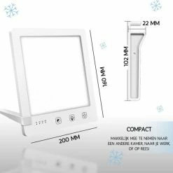 De lamp heeft drie lichtstanden, zo kun je in het begin wennen aan het licht en dit langzaam opbouwen. De lamp kun je aan en uit zetten met de schakelaar aan de zijkant. De lichtsterkte, tijdsduur en helderheid zijn in te stellen met de touchbuttons op de voorkant.