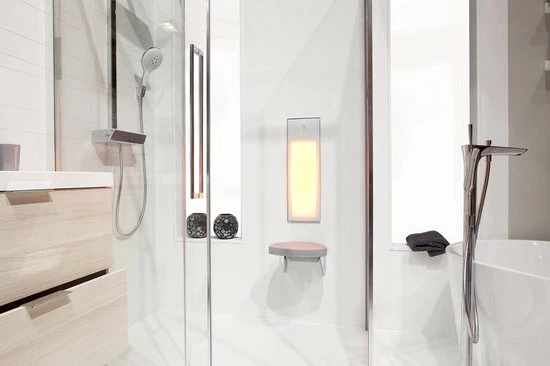 Ook heeft het een positieve werking op reumatische klachten. Daarnaast zorgt de warmte van infrarood ook voor een ontspannende nachtrust en een stralende huid. De Sunshower Pure is, met al haar voordelen, een onmisbaar element voor in de badkamer. Het paneel is zowel op sta- als zithoogte te plaatsen. Zo geniet je gedurende 10 minuten van een effectieve en optimale verwarming van het lichaam. Vind je dit te lang? Geen zorgen! Je stelt de tijd namelijk eenvoudig zelf in aan de hand van de touchscreen bediening.