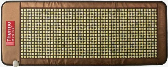 Deze therapeutische verre-infrarood (far-infrared) Thermomat jade XL is speciaal gemaakt om op te ontspannen en herstellen. Bij de Thermomatten wordt gebruik gemaakt wordt van carbon bedrading om geslepen (echte) Jade, Toermalijn, Amethist, Germanium en/of vulkanische stenen op te warmen. Deze stenen fungeren als een medium om een lange golf infrarood af te stralen die wel tot tussen de 8 en 12 cm diep in het lichaam kunnen binnen dringen. Verder is er nog de infrarood circulatiewarmte (contact tussen stenen en lichaam). De Thermomatten werken aardend, bevorderen de bloedsomloop en lymfecirculatie, helpen de zenuwen te ontspannen en vitaliteit te herstellen.