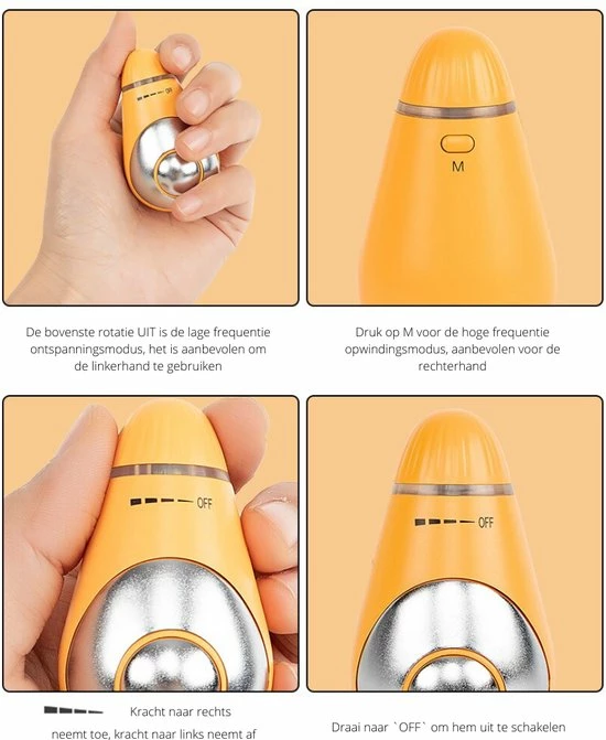 Druk achterop het knopje om de impulsfrequentie te veranderen van lage-frequentie naar hoge-frequentie.