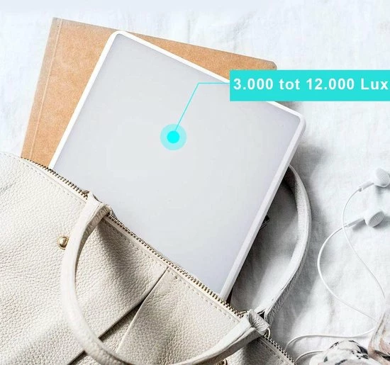 De daglichtlamp heeft zelfs een intensiteit van 20.000 lux als je het 1 cm van je gezicht houdt.