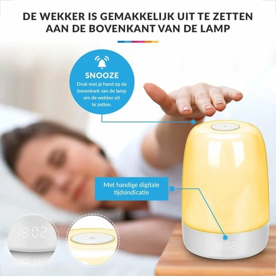 Veel mensen hebben moeite om in slaap te komen. Met deze wake up light is het mogelijk om beter in slaap te komen middels een timer. Deze timer werkt als volgt: Je kunt een timer van 10, 30 of 60 minuten aanzetten op het apparaat. Het licht zal bij het aanzetten van de timer beginnen op een helder niveau, naarmate de tijd vordert zal het licht geleidelijk minder helder worden en uitgaan.